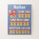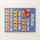 Colourful personalised kid's jigsaw puzzle with red train hauling the entire alphabet.