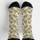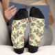 Wooden toys icon set in vintage colour pallete. Train, bicycle, spinning top, drum, airplain and beach ball. Seamless pattern. Custom background colour. Custom top stripe colour. Custom text on each sock.