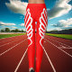A very unique pair of compression pants leggings for track and field or cross country runners, featuring a mirror image of the iconic Hermes Winged Foot printed on both sides. The background colour is set on bright red but can be changed to any colour you want via the "Customise" button. Perfect for track and field or cross country workouts!