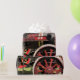 A photographic design of a beautifully restored vintage steam traction engine.