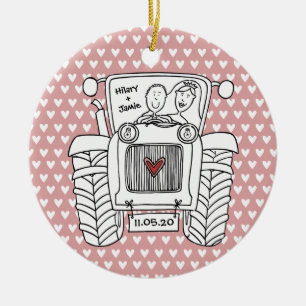 Personalised Tractor Couple Farm LOVE Christmas Ceramic Ornament