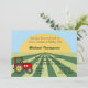 Kids Birthday Invitation with a red tractor and the rising sun. Great for farm kids or kids that love tractors and farming. You easily customise with your party details. Age of child on tractor.