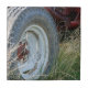 This is a photo of details of an antique tractor found on a bucolic farm in New Jersey. The tire has dirt stains from the tractor's years of use in farming. South Jersey has many farms like this one, but not so many old tractors. Agriculture is an important part of agrarian southern New Jersey. This piece of americana has a rustic look about it. It is a beautiful piece of machinery.