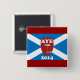 This button badge for supporters of independence for Scotland from the United Kingdom Westminster government features the insignia of the blacksmith's coat of arms, with the blacksmith’s hand and hammer inside a red shield. The words read 'Aye 2014.' This is a reference to the 2014 referendum when Scots will vote on the nation's future. The design is based on a photograph of the ancient blacksmith’s guild motto on the pews of Glasgow Cathedral which reads, 'By Hammer in Hand All Arts Do Stand.' The design is shown against the Scottish flag or saltire. The badge would be the perfect gift for friends and family who are supporters of Scottish independence and in particular members of trade unions and supporters of old Labour Party values. You can easily change the colour of the background to suit by using the customise button.