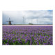 Photo print of a landscape with a traditional windmill and multiple modern windmills to generate green energy behind a field with purple hyacinth flower in the Bulb Region in Holland.