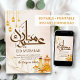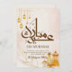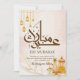 Celebrate the joy of Eid with this beautiful card featuring a traditional Dallah (coffee pot), dates, and Arabic sweets, accented with gold lanterns and stars.:
