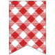 Basic Christmas bunting flags in red and green with white letters and two flags printed with a gingham pattern.