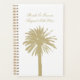 Traditional beach wedding planner book with calendar. Elegant template design with chic palm tree silhouette. Part of matching set for summer / destination wedding party. Gold colour spiral with sand beige print.