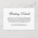 Traditional wedding enclosure card with the word, "details" in an elegant black calligraphy over a white background. The backside is white and may be changed to any colour you wish. Use these enclosure cards to provide directions and any other important wedding details that your guests may need to know such as hotel accommodations, parking, shuttle information, etc. This classic design is perfect for a formal, black tie wedding.