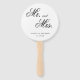 Typography wedding program hand fan featuring the words, "Mr. and Mrs." in elegant black calligraphy and your names and wedding date, over a white background. Add your ceremony events on the back. If you will be having an outdoor wedding, these hand fans are a great to offer to your guests to help them keep cool and also make a great souvenir.