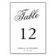 Elegant wedding table number featuring a simple and classic design with "table" in a formal black calligraphy along with your names and date in a serif font, over a white background.  A classy and traditional design that is perfect for a black tie wedding.  Add each table number to your cart individually.