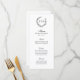 Set the table with this traditional black and white menu that features your initials inside a simple floral and classic wreath. All text areas can be customised to fit your unique wording. View the entire collection to create a cohesive wedding set.