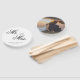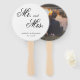 Elegant wedding hand fan featuring a simple typography design with the words, "Mr. and Mrs." in a formal black calligraphy along with your names and wedding date in a serif font, over a white background. The backside has your favourite photo. A classy design that is perfect for a black tie wedding.
