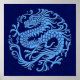 This flowing circular design features a flowing Chinese dragon. The body of the serpent snakes around from the top of the pattern down to the swirling tail. Four large claws extend from the body of the dragon creating an aggressive yet elegant stance. This beautiful pattern is a stylish take on the traditional Chinese dragon.