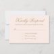 Traditional wedding RSVP card featuring the title "Kindly Respond" in an elegant calligraphy along with the response form in a faux gold tone over a blush pink background. This classic design is perfect for a formal wedding.