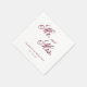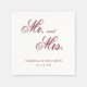 Classic style Wedding Napkin featuring "Mr. and Mrs." in an elegant calligraphy typography along with your names and wedding date. All text is burgundy over a white background and may be changed to any colours you wish by clicking the "customise" button. These napkins are a great way to add a personal touch to your reception, engagement party or rehearsal dinner and are perfect for a formal wedding.