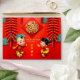 Festive traditional Chinese greeting with firecrackers, Lucky knots and auspicious clouds + golden Tiger paper-cut with Fu ideogram into a circle + two cute children to wish Happy New Year. Design on red envelope as hong bao with the same design inside. Matching greeting card. Perfect for Chinese New Year of the Tiger 2022. ----- "The Tiger (寅) is one of the 12-year cycle of animals which appear in the Chinese zodiac related to the Chinese calendar. The Year of the Tiger is associated with the Earthly Branch symbol 寅. (...) People born within these date ranges can be said to have been born in the "Year of the Tiger", while also bearing the following elemental sign: