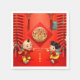 Festive traditional Chinese greeting with firecrackers, Lucky knots and auspicious clouds + golden Two young tigers paper-cut into a circle (model n°02) + two cute children to wish Happy New Year. Design on party paper napkin. Matching standard greeting card, square flat card and red envelope. Perfect for Chinese New Year of the Tiger.