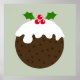 A modern Christmas illustration featuring a simple image of a traditional Christmas pudding complete with white icing, holly leaves and berries. The background is a soft green color but you can change it to anything you want.