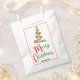 This paper favour bag design features a colourful abstract art swish red, green, and gold Christmas tree at the top and two colour Merry Christmas message below. The tree has a faux gold glitter star topper and framed by red. Fill in the personalise field or remove text for the information at the bottom of the design.