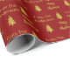 Traditional Dark Red Gold Merry Christmas Trees Wrapping Paper