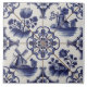 Traditional Delftware Blue Floral and Windmill Ceramic Tile