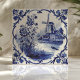 Bring classic Dutch charm to your home with this traditional Delftware-style tile featuring intricate cobalt blue floral patterns and windmill scenes on crisp white ceramic. The hand-painted details, delicate brushwork, and vintage aesthetic evoke an authentic Dutch folk art feel. Perfect for backsplashes, accent walls, or adding a touch of timeless elegance to your space.