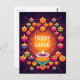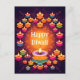 The postcard portrays a festive Diwali scene, centred around a radiant circle of Diyas (traditional oil lamps) that form a luminous frame for a warm Diwali greeting. Each Diya glows with a golden light, casting a gentle, flickering illumination that enhances the overall atmosphere of celebration and warmth.