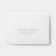 Simple Wedding RSVP Envelope featuring your names in an elegant calligraphy along with your return address. All text is in dusty blue over a white background and may be changed to any colour you wish by clicking the "customise" button. This classic style Wedding RSVP Envelope with traditional calligraphy is perfect for a formal wedding.