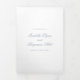 Classy all in one wedding invitation template with rsvp card and enclosure card attached, making this invitation suite convenient and budget friendly. The wedding invitation features a simple design with the names of the bride and groom in an elegant calligraphy and traditional wording. The template has fields for two hosts to be listed, making it ideal if the bride's parents are no longer married and both are hosting the wedding. The RSVP postcard has your mailing address on the back and your guests simply cut off and mail back to you. NOTE: First class postage is required for the RSVP postcard. Postcard stamps will not be enough postage due to the size. All text is dusty blue over a white background and may be changed to any colour you wish by clicking the "customise" button. A classic design that is perfect for a formal wedding.