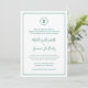 Simple Wedding Invitation with your monogram in a circle at the top and your wedding details surrounded by a thin border. Your names are in an elegant handwritten script font. All design elements are in a jewel tone emerald green over a white background and may be changed in the design editing tool. The classic, traditional layout makes this invitation great for a formal wedding.