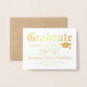 Traditional old style english font typography Photo College Graduation Announcement Card Invitation in horizontal orientation. Beautiful gold foil leaf, with mortarboard graduation cap icon logo. Wonderful and classic great for male graduate. Modern sophisticated graduation announcement is ideal for college level graduates or high school students. Formal Classic Elegant design with stately block font writing. Great cheap inexpensive option in place of official school announcements. Formal to traditional and classic graduation invite suitable for anyone, whether grad school, trade school, nursing, medical or law school.