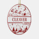 Add a fun and classic touch to your tree this year with a personalised ornament that can be passed down for generations. The traditional red and white design features a cosy home surrounded by pine trees while Santa and his reindeer fly overhead in the night sky. Makes a great gift that can be passed down as a family keepsake for years to come!