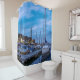 Traditional fishing town night scene shower curtain