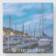 Traditional fishing town night scene. stone coaster