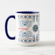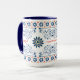 Add bold elegance with this traditional folk floral pattern featuring blue ornamental scrolls, red accents, and a detailed mandala on a rich black background. Perfect for décor, fabric, stationery, apparel, and stylish gift products.