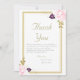 An elegant rustic wedding thank you card featuring an updated classic, the gold frame, and modern watercolor and graphite roses (pink and purple) with gilded eucalyptus and greenery. Simple and modern, classic and traditional. Something old, something new...