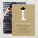 This classic and simple gold and white graduation party invitation card design features a bold monogram letter 'I' of the graduate with a mortar board / graduation cap as an accent.