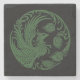 Traditional Green Phoenix Circle on Black Stone Coaster