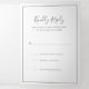 Simple All In One Wedding Invitation template with rsvp card and enclosure card attached, making this invitation suite convenient and budget friendly. The wedding invitation features your monogram in a circle at the top and your wedding details surrounded by a thin border along with your names are in an elegant handwritten script font. The backside features your favourite photo. All design elements are in medium grey and may be changed in the design editing tool. The RSVP postcard has your mailing address on the back and your guests simply cut off and mail back to you. NOTE: First class postage is required for the RSVP postcard. Postcard stamps will not be enough postage due to the size. The classic, traditional layout makes this design great for a formal wedding.
