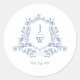 Traditional Monogram Crest Blue Elegant Wedding Classic Round Sticker