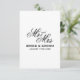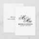 Classical script Mr & Mrs wedding enclosure card. Traditional design template for additional info like website address. Great for traditional marriage any time of the year. Timeless black and white typography design. Vertical layout.