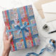 This wrapping paper features a vibrant geometric pattern inspired by traditional handcrafted needlework. The design showcases an eclectic mix of triangles and squares in a sophisticated palette of deep navy, burnt orange, and warm neutrals. Intricate overlapping shapes and contrasting colors create a dynamic visual texture reminiscent of a vintage heirloom. This premium stationery provides a stylish way to add a classic aesthetic with a modern, artistic flair to any gift or craft project.
