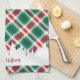This holiday tea towel celebrates the classic charm of the season with a traditional red and green plaid background and white Christmas tree border. It is designed with a rich, cosy plaid pattern that evokes a sense of nostalgia and warmth, perfect for capturing the spirit of Christmas. Accented with a customisable greeting, this kitchen towel is a heartfelt way to show your holiday spirit. Whether you're embracing old-fashioned baking traditions or simply love a timeless holiday look in your kitchen, the this festive towel brings a touch of classic elegance to your holiday preparations.