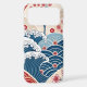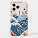 Traditional Red Blue Japanese Wave Sakura Pattern