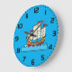 Traditional Red Chinese Junk Ship on Blue Waves Large Clock