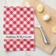 Ms. Monogram's traditional red gingham pattern kitchen towel design features the well-known buffalo check pattern with a modern twist -- it's personalised with the recipients name. Kitchen towels make wonderful additions to house warming gift baskets. #BlueKitchen #Red #Monogram