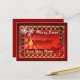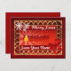 PERSONALIZE this chic elegant sophisticated traditional vintage red damask, with a fun red & gold christmas tree design , bow snowflakes, and gold border with your own text.