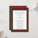 This colourful red, green, blue, yellow, and white Royal Stewart tartan plaid pattern, sets the backdrop for this Scottish inspired wedding invitation. Graphics of a white text overlay has black and red text ready to personalise for your special day. Matching products available.