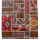 Traditional ethnic rug displays exquisite patchwork decoration.